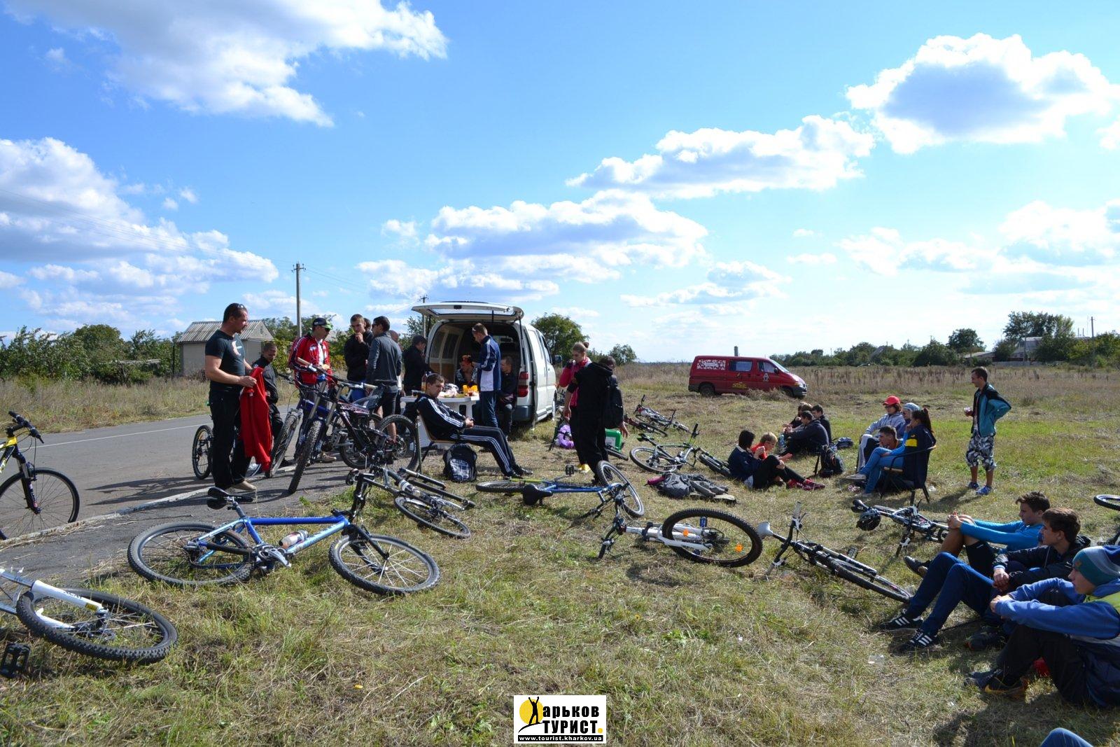 Дети и родители - туристы, велосипедисты