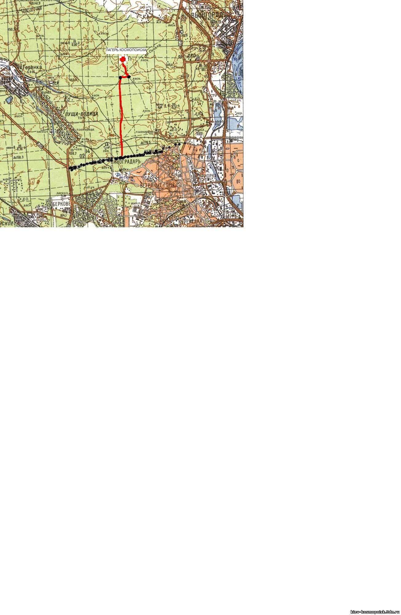 Возможны и другие варианты проезда, но в любом случае необходимо выехать на Минский проспект (Р02, Т-1002). Это наиболее близкая и наименее загруженная асфальтированная дорога, проходящая в непосредственной близости от лагеря Космопоиска.