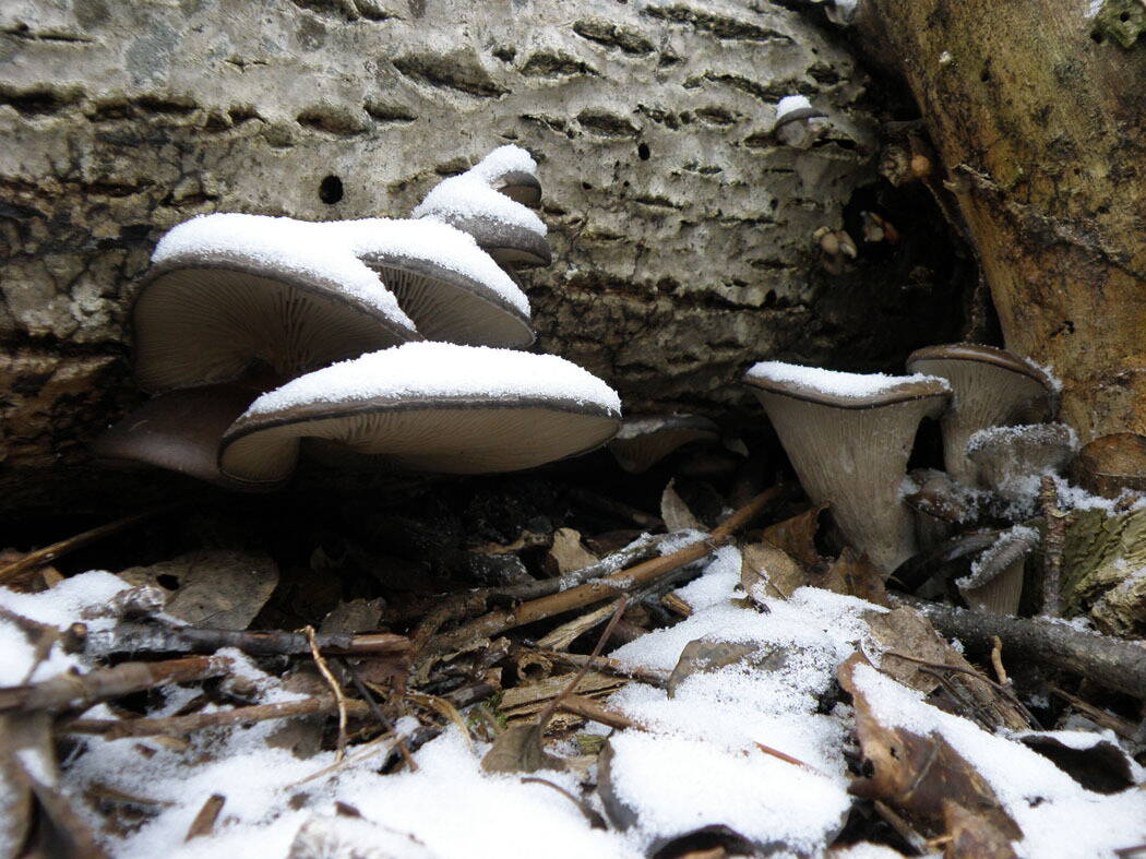 Подтверждаю - вчера на даче немного насобирал вешенок. Выходит за полтора месяца они таки выросли. Правда были замерзшие, как пластмассовые. Зато хорошо отламывались от ствола. Растут на стволах грецких орехов. Я даже начал складировать такие стволы умерших орехов в одном месте, может на них вешенки и разрастутся...
