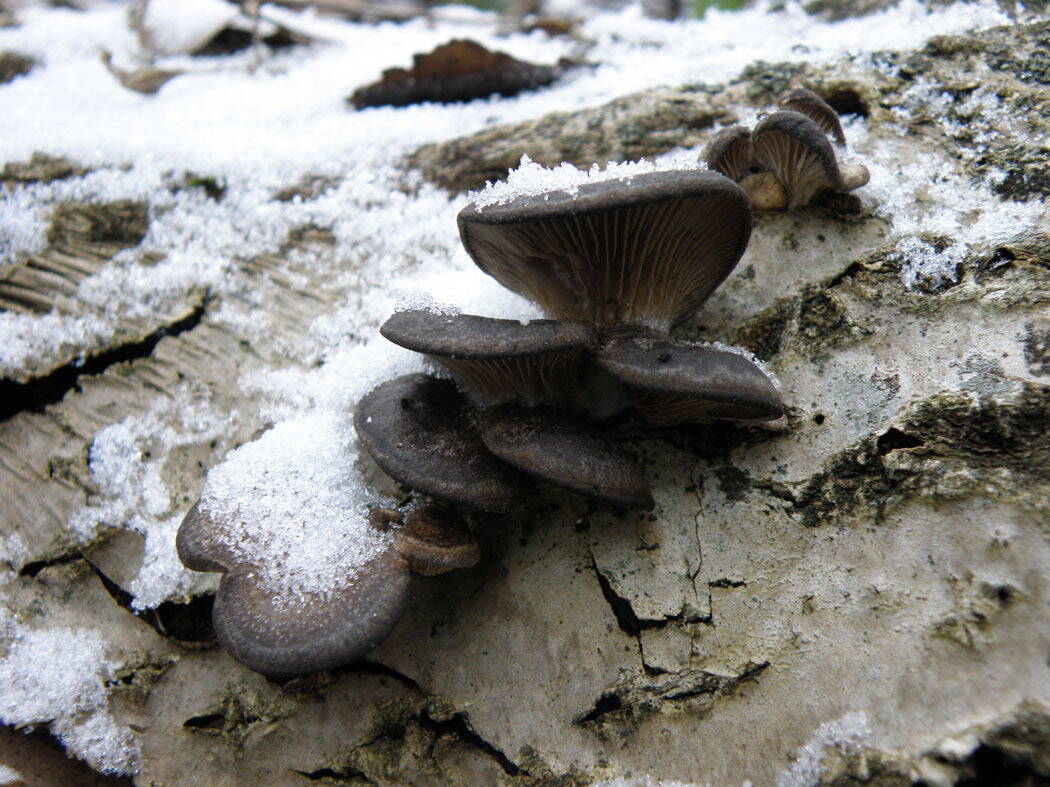 Подтверждаю - вчера на даче немного насобирал вешенок. Выходит за полтора месяца они таки выросли. Правда были замерзшие, как пластмассовые. Зато хорошо отламывались от ствола. Растут на стволах грецких орехов. Я даже начал складировать такие стволы умерших орехов в одном месте, может на них вешенки и разрастутся...[/quote]