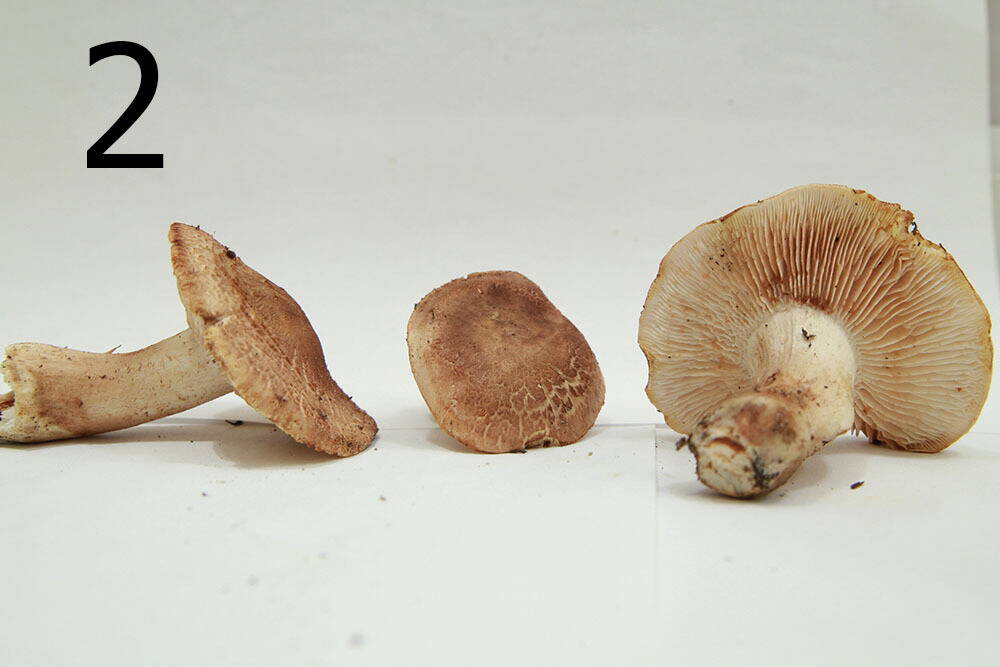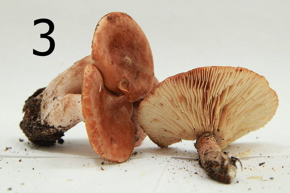 По данным фото могу только предположить, что на первых двух фото кто-то из рода Tricholoma. То-есть, говоря по-нашенски - рядовки. Более точно определять не возьмусь - не спец я по рядовкам, из оных хорошо зная только "зелёнку", рядовку серую/штриховую, рядовку майскую, тополевку (+ её ядовитого двойника - рядовку погубленную, произрастающую под соснами) и рядовку красно-желтую, которая, впрочем, уже и не совсем tricholoma, а уже tricholomopsis. Опять же - для определения нужны фото чистых грибочков, причем необходимо предельно аккуратно извлекать их, не загрязнив, а ни в коем случае не мыть перед фотографированием, так как мытые грибы часто меняют облик до неузнаваемости.