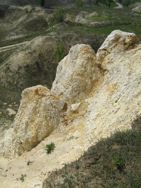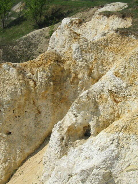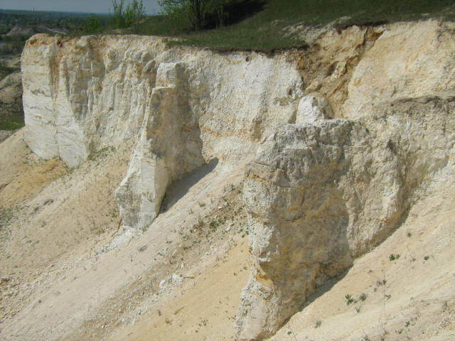 Ребята,если кого-то тема интересует глядите в теме "Белокузьминовка" мой экскурс к меловой горе.На фото отчетливо виден растущий в стенах кремень,которого можно и набить и насобирать внизу немало.