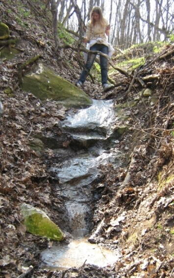 водопадиком, который в свою очередь внезапно завершает лесной ручей и вода исчезает в его долине.