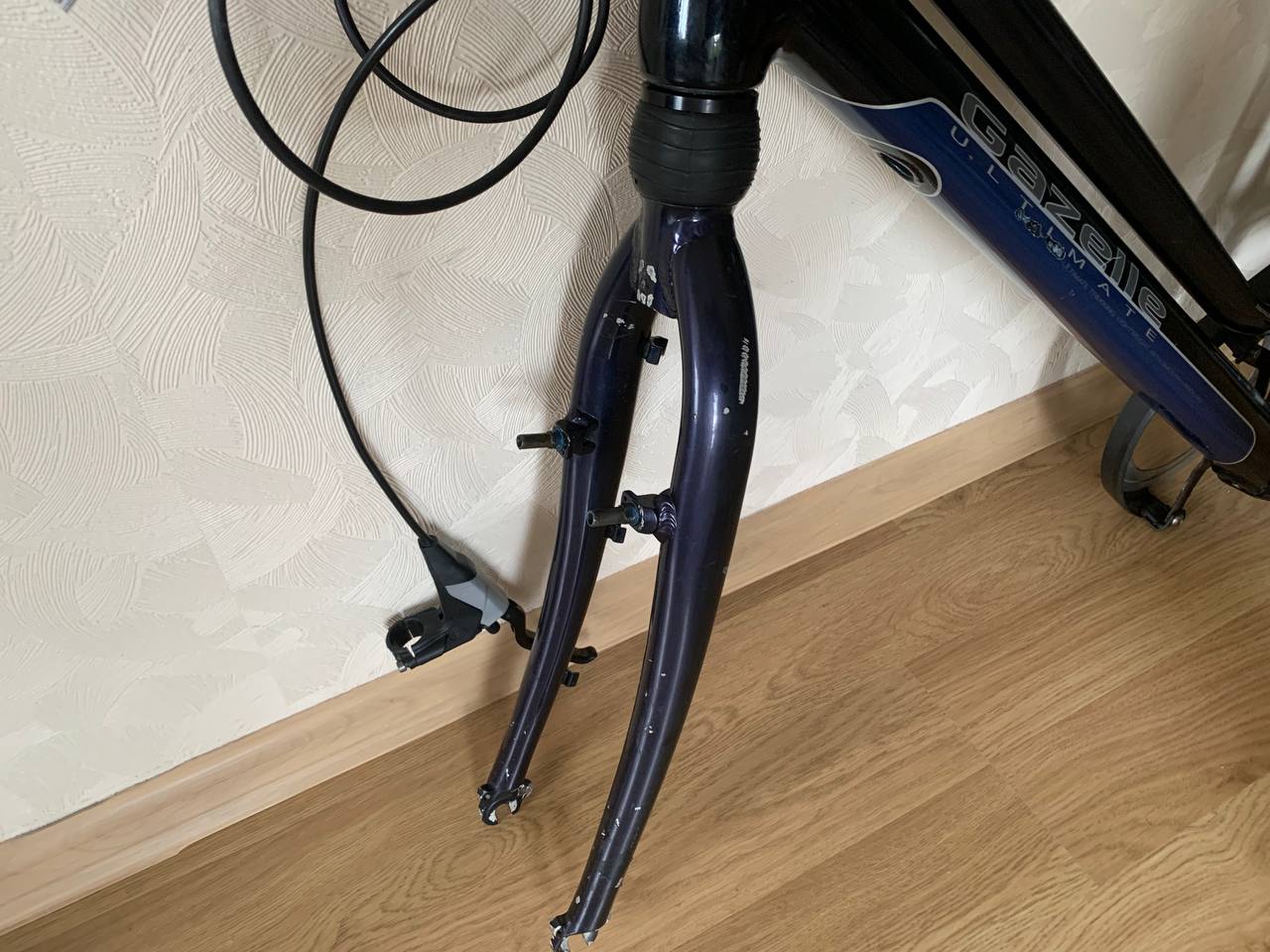 в комплекті: рама, амортизаційна вилка, рульова, багажник, насос, болотники, замок, гідравлічні задні гальма Magura, лапка, захист ланцюга та шатунів, півень, підсидільний зажим.