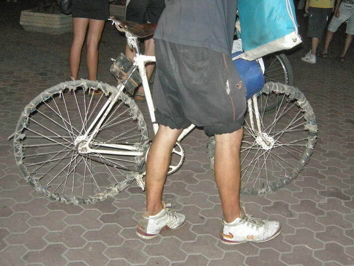 А хз...это наверное велобомж...новый подвид, чуть мажорнее обычных бомжей :)