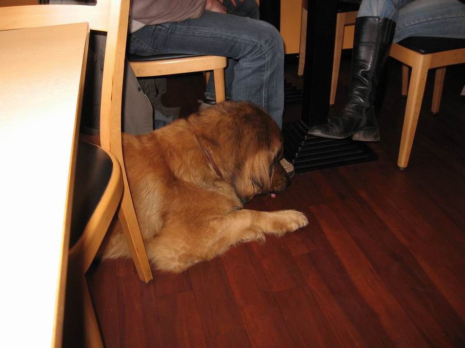 В кафе зашли бюргер с бюргершой и бюргером-псом, килограмм на 80-90, сели за соседним столиком. Заказали закусь себе и собаке. Я с отвисшей челюстью фотографировал происходящее и закидывал хозяев вопросами. Пес спокойно кушал и не то что не выразил недовольства по поводу моего любопытства, но лишь пару раз взглянул на меня глазами полными собачьей мудрости и терпения и тут же отводил взгляд в пол. Пес не был охранником своей территории, своей жрачки, да и ел также степенно, как те прихлебывали пиво. Такого я еще не видел :shock: