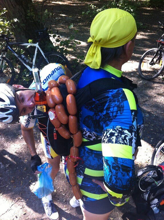 Все было восхитительно! Утро раннее (зато все успели)! Маршрут удобный! (Кто куда спешил) Пиво свежее (безалкогольное, само-собой), чебуры свежеиспеченные (с пылу - с жару), лесопарк приветливый (он всегда приветливый, когда в него не с пустыми руками въезжаешь), костер горячий (уходя не забыли погасить), аксессуары свежеиспеченные (всем хватило, даже осталось), настольные игры завораживающие (исключительно высшего качества и пятизвездночного образца)! Все в них играли шо Карпов с Каспаровым за мировую корону (четко и продуманно в ответе за каждый ход). В общем, все как у людей! Праздничный велопробег практически прямо на маршруте превратился в римейк Дня веловоенно-морского флота (у "Дубков" своевременно был поднят "Веселый Рожджер"), а гвардейский флотский экипаж единомышленникофф заранее подобрался на славу (все люди бывалые и знали, зачем ехали на этот праздничный велопробег и кому он нужен)! Никого не штормило, на палубу никто не падал и за борт никого не смыло волной! На кортиках никто не дрался и на абордаж не лазал. (Приводов в милицию никто не имел).