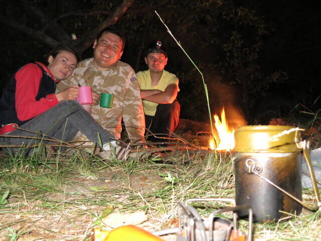 Первая партия в количестве 3 человек на место ночевки добралась. Обустраиваются :smile:. Воруют дрова у соседей :lol:. Говорят что если у кого-то есть ручная цепная пила - берите, пригодится.