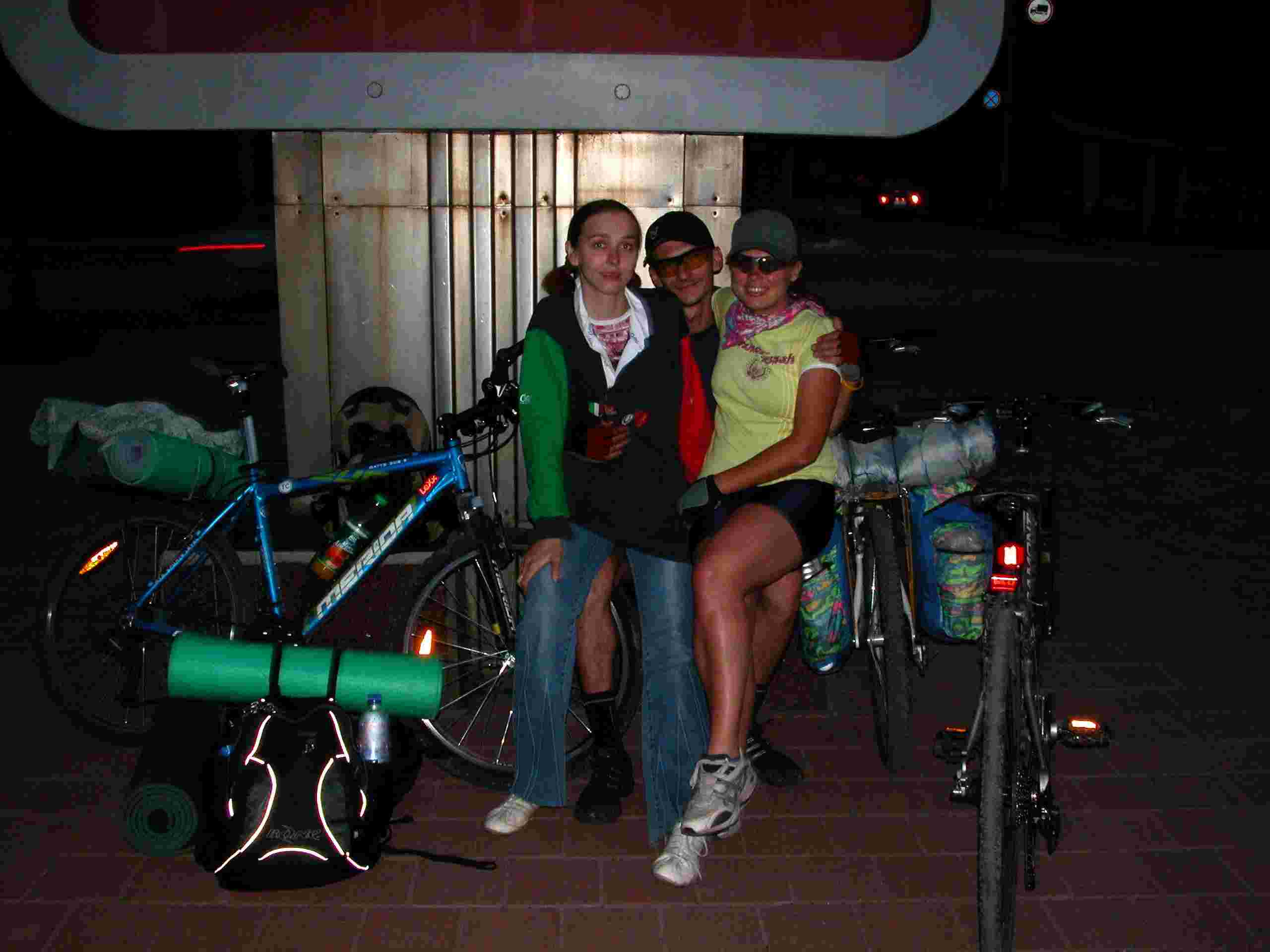 Проснулась утром – дождь, подумала: «вай-вай-вай как же там ребята едут?» Опять спу.. :oops: … Собралась ехать на элке в 15:47 с Лосево. Задержавшись в магазинчике, понимаю, что нужно спешить, и лечу по московскому 28-32км/ч . Стоит элка, выпускает сжатый воздух, я доруливаю до головы поезда, решаю ехать на слудующую ст. Закрываются двери, и тут, поравнявшись с первым вагоном, я вижу машиниста -- и начинаю вопить: «Возьмите меня!!!» Подлетаю, кладу вел на перрон, подтягиваюсь на решетке, вел падает, машинист матерится, я что-то бормочу извинительное, опять кладу вел, подтягиваюсь, в голове тем временем крутится мысль «сейчас силушка кончится, повиснешь на решетке…» -- но всё-таки смогла. Втискиваюсь в вагончик, тут и место, на счастье. Картина маслом: спокойный размеренный вагончик, все сидят рядком и читают газетки -- и тут вваливается что-то красное, часто дыщащее, перемазанное решеткой (она почему-то оставляла следы). Тихонечко сажусь и начинаю усиленно пить чай, чтобы прийти в норму. Выхожу на станции Чугуев и встречаю компанию: Сережку, который собирался на 17:15, Олю, Сашу, ProstoSergik, еще пару ребят. Поехали вместе, по дороге затарились в паре магазинчиков, на место приехали в 19:00 часам и влились в компанию Паравозова. К 20:00 подкатила компания Лаки Тохи, а чуть позже Зоя, Gnoos с Мариной, Карамелька. На празднике слушали: Бряц-Банд, подпевали попурри («Крылатые качели», «Земля в илюминаторе» и «Буратино» :-) прислушивались и посматривали на Руслану. Много танців и англицкого языка с украинским произношением, меня не впечатлило… Зато фейерверк все запомнили, начали торжественно можно прокомментировать так – Бах, БА-Бах!!, Бах, бах,бах. Пфффф бееее-е :twisted: . Потом сидели и мило общались у костра до 3:30. Встав с утра, перекусив и поиграв в фрисби и гуцульскую игру на «Б» (болибока или как ее…), я с ProstoSergik в 10:00 стартовала домой. Ветер, встречный ветер всю дорогу... :( В итоге дома была в 15:40, усталая и довольная. Спасибо Сергею Мельникову, спас меня своим спальничком. И особое спасибо ProstoSergik: помогал, на остановках надул подушечку, дал посидеть и набратся сил :-) , ожидал и держал мой темп всю дорогу. А еще обучил каденсу :wink: