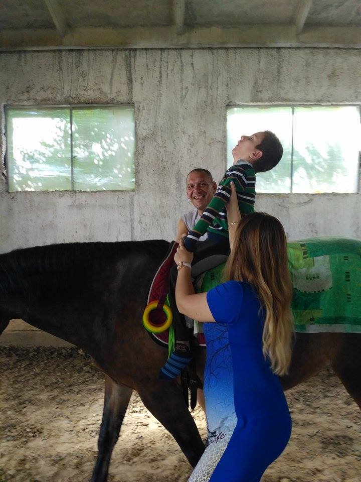 Сегодня занятия на лошади прошли очень хорошо Олег пытался сам удерживать голову и выполнял небольшие но для него очень сложные упражнения такие как повороты головы в право и в лево по команде инструктора а в перерывах между занятиями нам предложили провести урок ЛФК для лучшего укрепления мышечного корсета (180гр.одно занятия) все упражнения направлены на то чтобы Олег быстрее начал держать голову и самостоятельно сидеть пока всё идёт по плану результаты есть а это главное