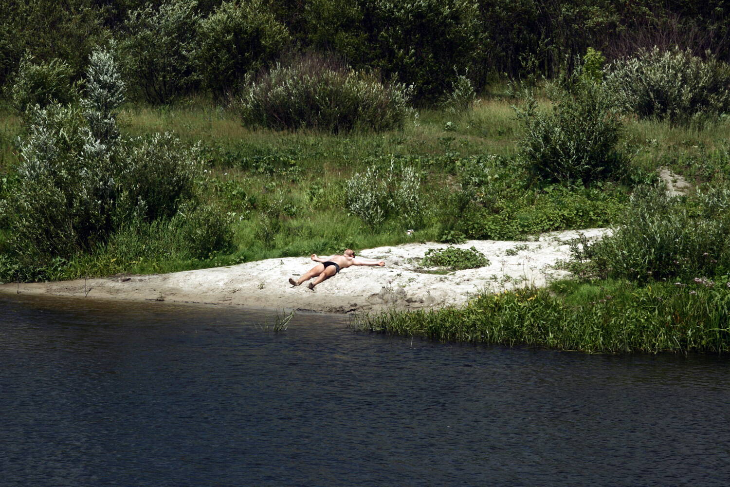 Тут тоже получился весьма любопытный учаток, о котором совершенно не осталось фотосвидетельств. Сначала по дремучему лесу с брёвнами, колеями, гигантскими лужами, зарослями крапивы и, разумеется, саблезубыми комарами; затем и вовсе по болоту, которое в своё время изрядно выручило партизан, а позже было осушено. «Осушено» — это, как выяснилось, совсем не значит, что по нему можно свободно передвигаться. Дороги еле видны, сезонны и окружены исполинской травой, под колёсами чавкает. Ну прямо пампасы да и только: очень забавно выглядел караван голов над полутораметровой травой. Не обошлось без бродов. К окончанию болотного трейла только один участник мог похвастаться сухими носками. А в неспешном передвижении по сочной траве нашёлся свой шарм, все довольны.