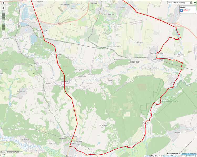 2) Горизонт - Докучаевские сады - Вдоль Роганки - бетонка через кукурузное поле - Терновая - Веденка - Новопокровка (до Терновой грунты и есть несколько апхилов подряд)
