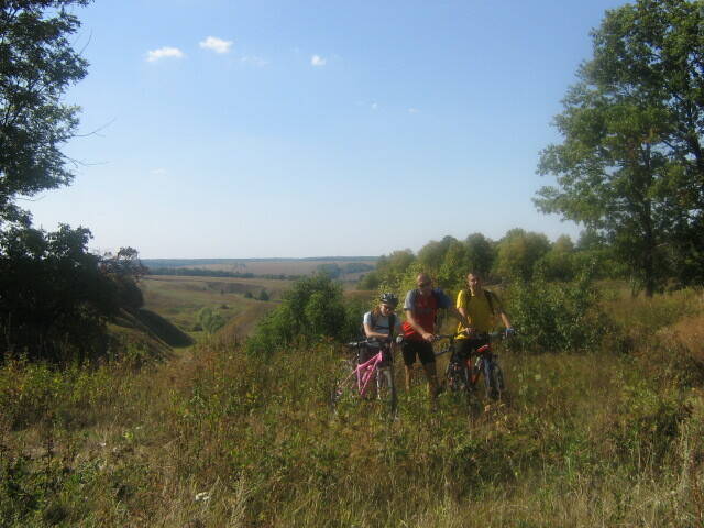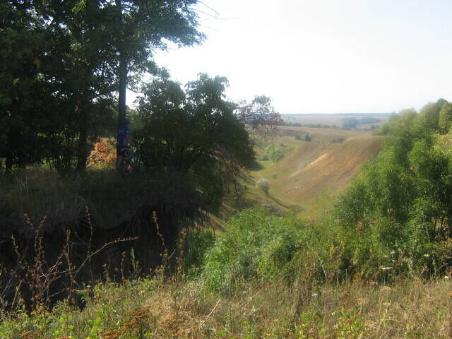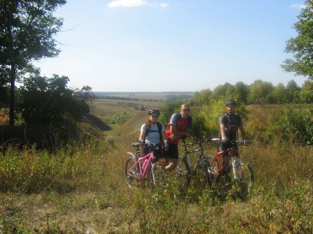 вот и закончился летний сезон Forest Riders, на мой взгляд мы достойно проводили лето 2009. Собралась хорошая компания, особенно нас всех обрадовало появление розового марина, с Таней в придачу :smile: , так что было кому скрасить :oops: покатушку :smile: . Ехали доступным темпом с минимом остановок, поэтому и фото в лесах нет. На самом деле нам удалось проехать все леса в данной местности без исключения. Были и тяжелые дебри, через которые пробирались чуть ли не пешком, но результат оправдывал ожидания и после них нам открывались чудесные виды. Стоит отметить большое количество крутых подъемов на которые карабкались на пределе возможностей. Первый привал был сделан аж через 45 (!) км. По пути нам встеритлся удивительный ураганчик - в небе на большой высоте кружили высушенные растения, а затем самая главная цель покатухи - это удивительные овраги близ Ольшаны, в которых были обнаружены..... горы, такие же как и в Веденке, только немоного больше, а сама долина напоминала о скрытой красоте нашей местности, которая так рядом. Думаю что это место можно отнести к красивейшим местам нашей области. Обратно доехали своим ходом до Харькова. В целом покатшука прошла успешно, единственное огорчило уже в Харькове, когда нас во главе с Таней подрезала какая-то с%к@, причем самым наглым образом, хорошо нас было всего трое и все успели среагировать, но осадок остался.