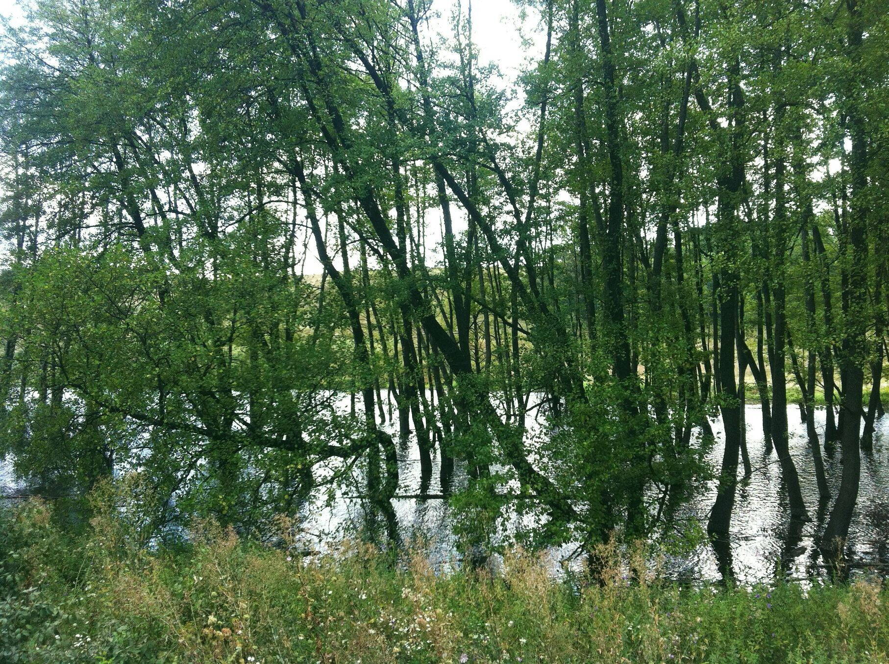 Свои 70 км мы проехали чудесным маршрутом, також с колючками и травой во весь рост! Видели половодье и наглого шмеля,который не реагировал на вспышку фота...