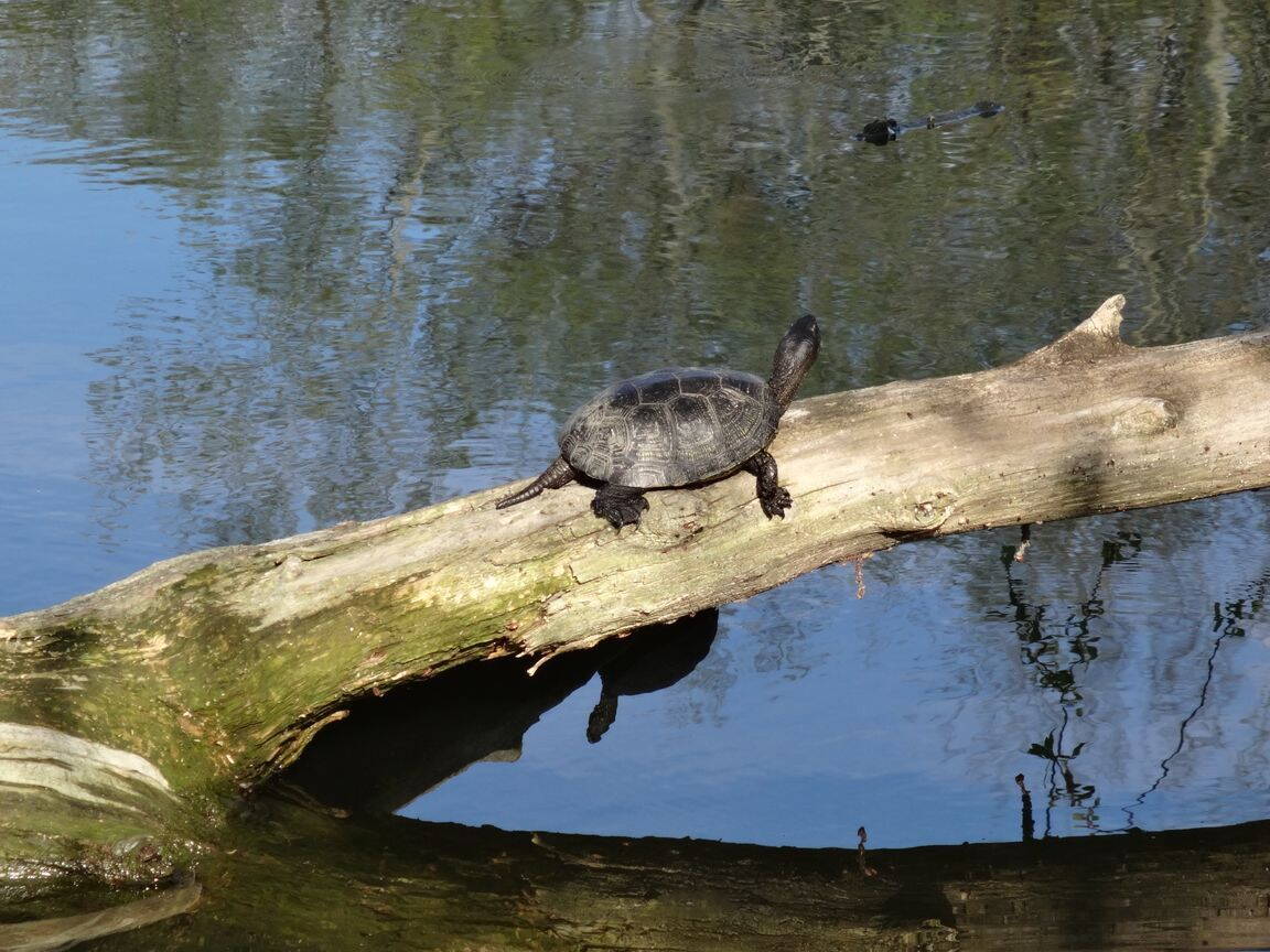 Когда-то просто-таки охренел от вида целой своры черепах, сидевших на ветках ивы над водой: так и не понял, как они умудрились залезть по почти вертикальному стволу на такую высоту (метра два над водой было!). А когда я подошел ближе - пресмыкающиеся дружно ломанулись наутёк: булькот был, как от стада кирпичей! :)