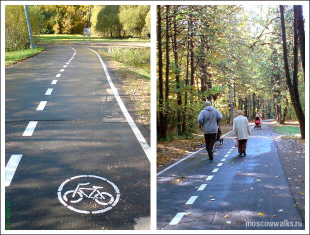 Как она выглядит? В принципе довольно широкая, рядом могу проехать два велосипедиста, кусты по бокам, вроде как обрезаны, в нужных местах сделаны мостики довольно нормальные и широкие.