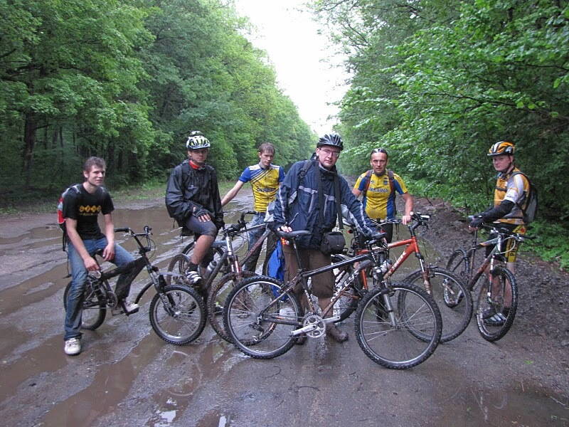 Вобщем всетаки решился ехать с самыми отважными. Стартонул ,когда уже все уехали. И пока ехал по асфальту реально получал кайф от езды под дождем. Догнал и обогнал лидеров :crazy: И как оказалось на скорости 32 км/ч дождь становится теплым :D Потом запомнился не большой глиняный участок с двумя падениями - одно падение с разворотом на 90 градусов :D Дальше был даунхил со швейцарии :) И все это было на сликах :crazy: Дальнейший путь пролегал по лесной дороге с кустами и комарами. Тут то и принял решение, что фсё, накаталсо. Выбрался на белгородку чуток себя обмыл в луже, встретились с Вадиком и погнали на "пески". Вода кстати была не холодная, но грязная, безлюд рулит. Жалею, что Вадик сфотал меня уже после купания в луже :D