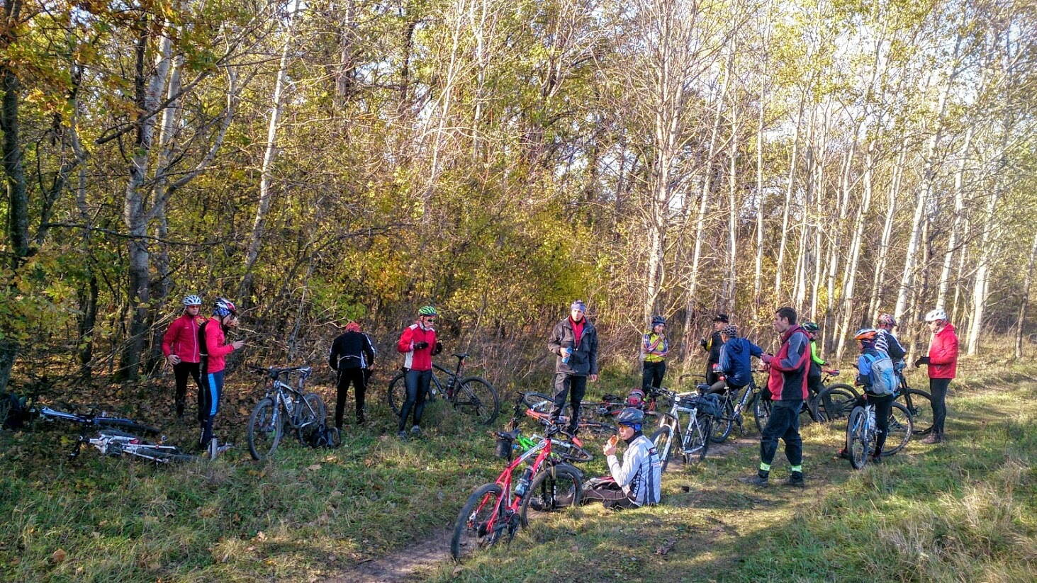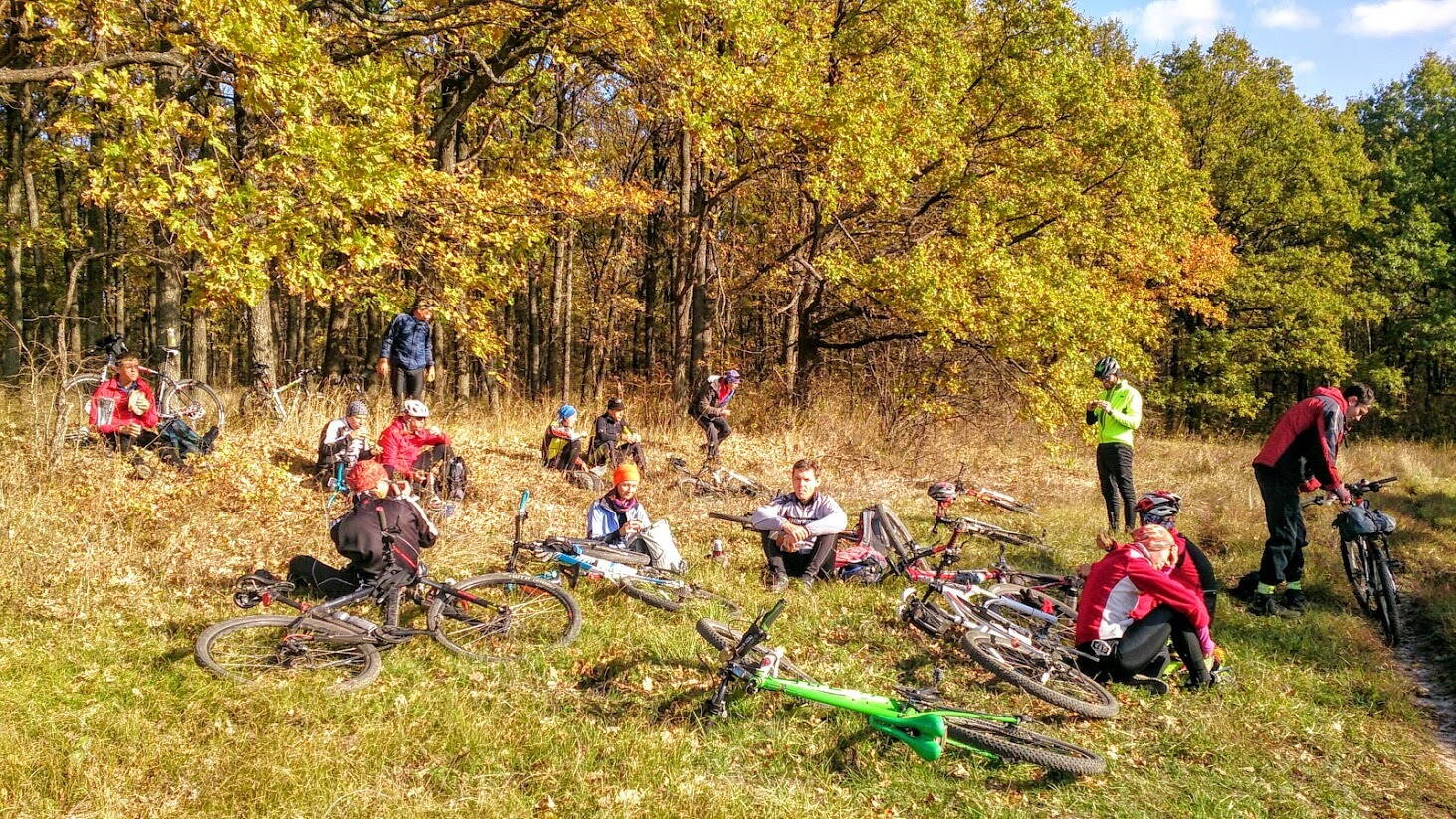 Спасибо ребятам за теплую компанию. Море юмора и позитива заряжали весь день. В итоге по пути имели один прокол(в моём исполнени), и два раза рвали цепи...а ещё потеряли одного участника, но доблестный орг не дал ему пропасть в лесных чащах Харьковского урочища где вовсю шастают страшные и голодные ёжики. Ах да, вниманию потенциальных будущих катальцев, в Полевой магазин закрыт навсегда, так что не стоит на него расчитывать.