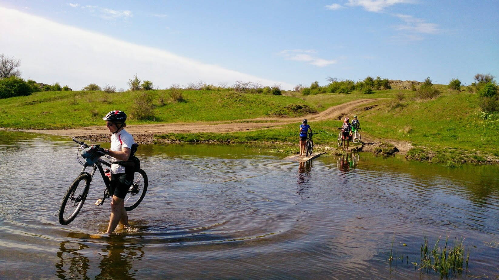 96 км незабываемых красот. Маршрут 2-го дня начался со спуска к Ю.Бугу до паромной переправы, чтобы попасть на правый берег. К нашему удивлению там еще ходила и лодка, как оказалось, более быстрый способ перебраться через реку всего за 3 грн . Паром более медленный + ожидание загрузки 1-2 машин. Дальше наш путь пролегал вдоль Ю.Буга и Александровского водохранилища с прекрасными видами Бугского Гарда до плотины Александровской ГЭС, по которой снова вернулись на левый берег по направлению к н.п. Трикраты и Актово. Спустившись к пойме р.Арбузинка столкнулись с преградой в виде полуразрушенной дамбы, к нашему счастью промоина была засыпали камнями. Проехав небольшой лужок, и снова "спідкала невдача ниших спортсменів" :facepalm:, - поле с перепаханным 2 км участком дороги вдоль Арбузинки. Добравшись до Трикрат и его магазинчика ворвались в "Трикратский лес", где пришлось отмахиваться от двух дяденек, которые хотели сбрить по 5 грн с каждого за посещение этого леса аргументируя свое требование какими-то бредовыми баснями и какой-то там бумажкой. Выехав из лесу, сразу попадаем в начало Арбузинского каньона, все выше и выше поднимаясь по тропе попадаем на одну из основных смотровых площадок - камень "Пуп земли". С этого места открываются виды на Актвоский и Арбузинский каньоны.Получив заряд впечатлений, сделали смотровой кружок Актовского каньона с обеих сторон. Тут даже не знаю ка описать, нужно просто смотреть :"": на этот необычный рельеф и каменные образования с протекающей внизу речушкой. С другой стороны близость этого места к населенному пункту и дорогам, делает его каким-то обыденным из-за наплыва большого количества людей и транспорта. Маршрутками и автобусами туристов подвозят прям на плато самого каньона. Увидели, посмотрели и в обратный путь :cool:.
