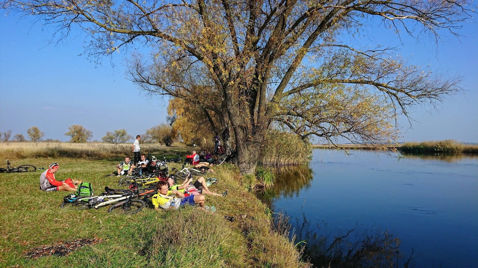 Превосходно прокатились солнечным и теплым деньком, попытки осени разбаловать нас хорошей погодой удались :list:. Программа задуманного свершилась в полном объеме, все и везде успели, увидели множество красивых пейзажей, осенние леса нужно выделить отдельной строкой. Маршрут получился такой себе задорный и рельефный, не только преодолевали всевозможные подъемы, но и с ветерком спускались, получив заряд адреналинового восторга :ski3:. На берегу Донца, за Печенегами, на привале так было по летнему тепло, что хоть бери и купайся :plavec: :matras:. Гость привала в виде рыжего кота, которого все гладили и подкармливали, напоследок стянул пирожок и убежал, - гладили, фотографировали - всё, - всему есть своя цена :ROFL:. Спасибо всем за бодрую и дружную компанию (по факту нас собралось 13 человек). До новых встреч!