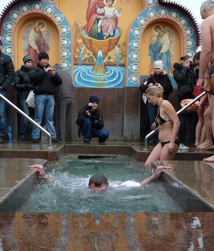 Я там каждый год "проталкиваюсь". Воды набрать - проблема. Окунуться - нет. Кто не будет кунаться - да просто потусить-порадоваться с народом. Праздник же! Тем более - выходной день. Если сами себе праздник не устроим, то его нам не устроит никто. А на Крещение - "Сам Бог велел", как говорят в народе! Тем более это мероприятие, помимо прочего, прекрасная пропаганда здорового образа жизни! Чтобы летом после покатушек всегда к тому источнику тянуло: если уж на Крещение там кунался, то летом - это уж просто рядовое событие и не подвиг. Кто верует - тому и капли для спасения хватит. А без веры - хоть всю реку выпей - не поможет. Имеющим желание таки окунуться,кто не подготовлен - начинайте со следующего утра опрокидывать на себя ведерко студеной воды после душа и обратно под теплую струю не лезть. И "по пьяной лавочке" в купель соваться - тоже не рекомендую.
