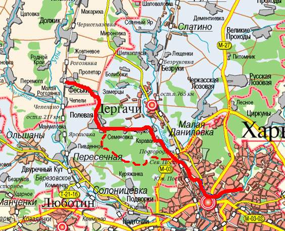 ездил от Куряжанки вдоль ЛЭП, выехал в Дергачи, дорога та ещё, иногда можно 30-35 топить не задумываясь, иногда в руках приходилось катить, но всего пару раз метров по 15-20.