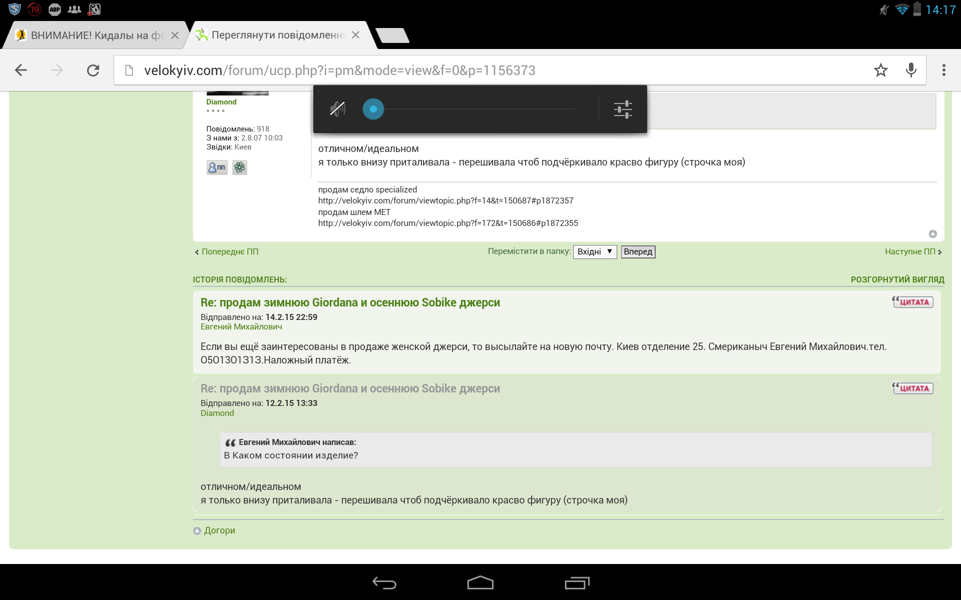 ВелоКиев это вообще придурковатый форум с неадекватной модерацией , не разу не получалось с него не купить не тем более продать