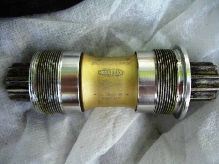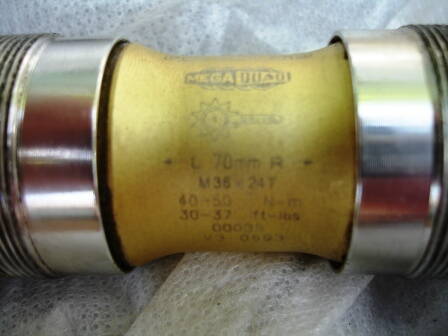 И еще по раме можно прикинуть. Если кареточный стакан длиной не 68 и не 73 мм - значит, все-таки не под английский стандарт. Судя по надписи на картридже, должно быть 70 мм. При обеих правых резьбах это итальянский стандарт: 36 мм х 24 витка на дюйм. http://sheldonbrown.com/bbsize.html