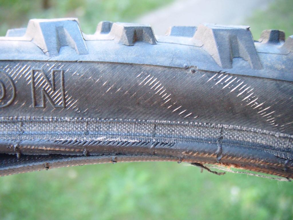 Корд зруйнувався. Ось моя стара покришка - порізів немає, але нитки корда там де вони відкриті вже струхли.