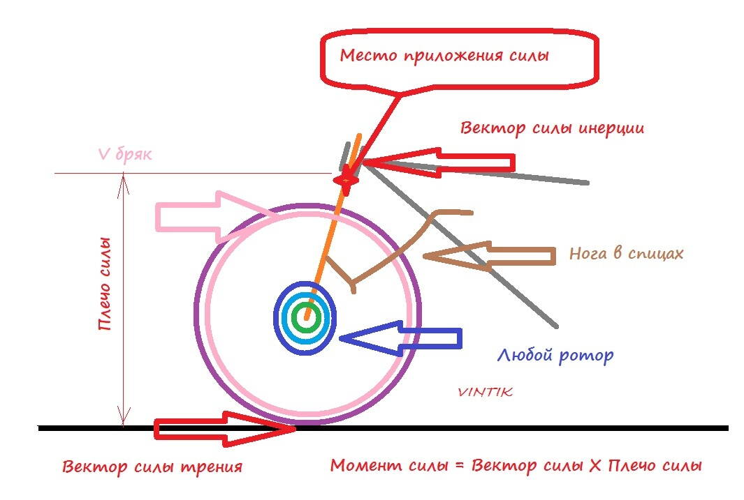 Очевидно, что размер ротора никак не влияет на "излом" вилки. Нет никакой принципиальной разницы чем и как блокировать колесо.