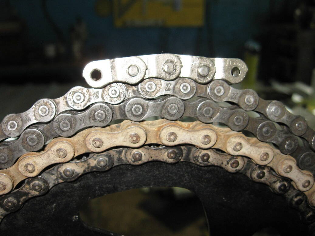 Мне было лет 10 когда я снимал цепь со звёздочек на своем Орленке, прикладывал её к бордюру и расклёпывал пин дюбелем и кирпичом.