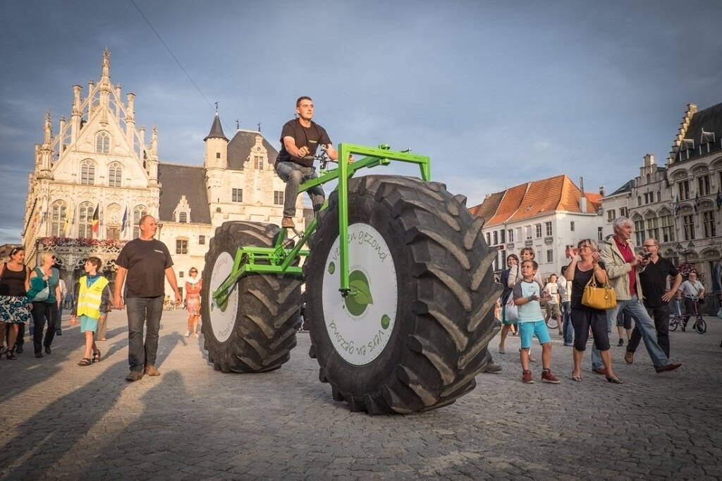 Нынешний рекорд принадлежит бельгийцу Джеффу Питерсу, который сконструировал 860-килограммовый "велик", но 49-летний водитель грузовика из Германии смастерил еще более монструозное транспортное средство. Раму и основные детали Фрэнк сварил из металлолома, а два огромных полутораметровых колеса позаимствовал у сельскохозяйственной техники. На проектирование и сборку велосипеда у немца ушло более года.
