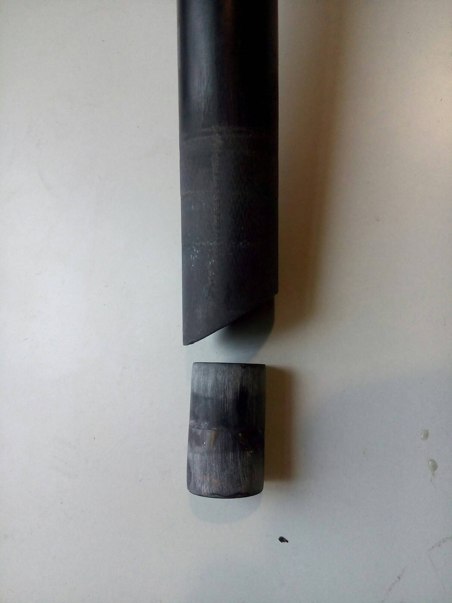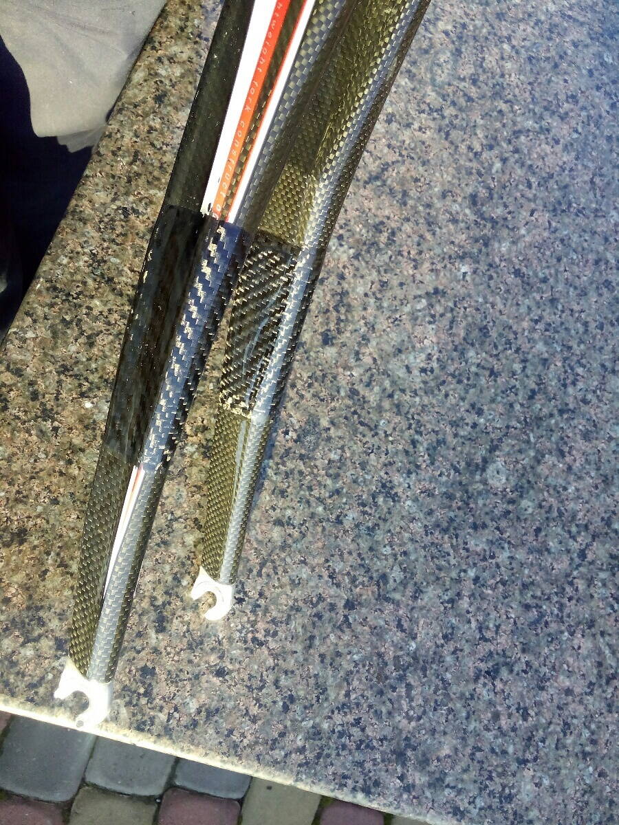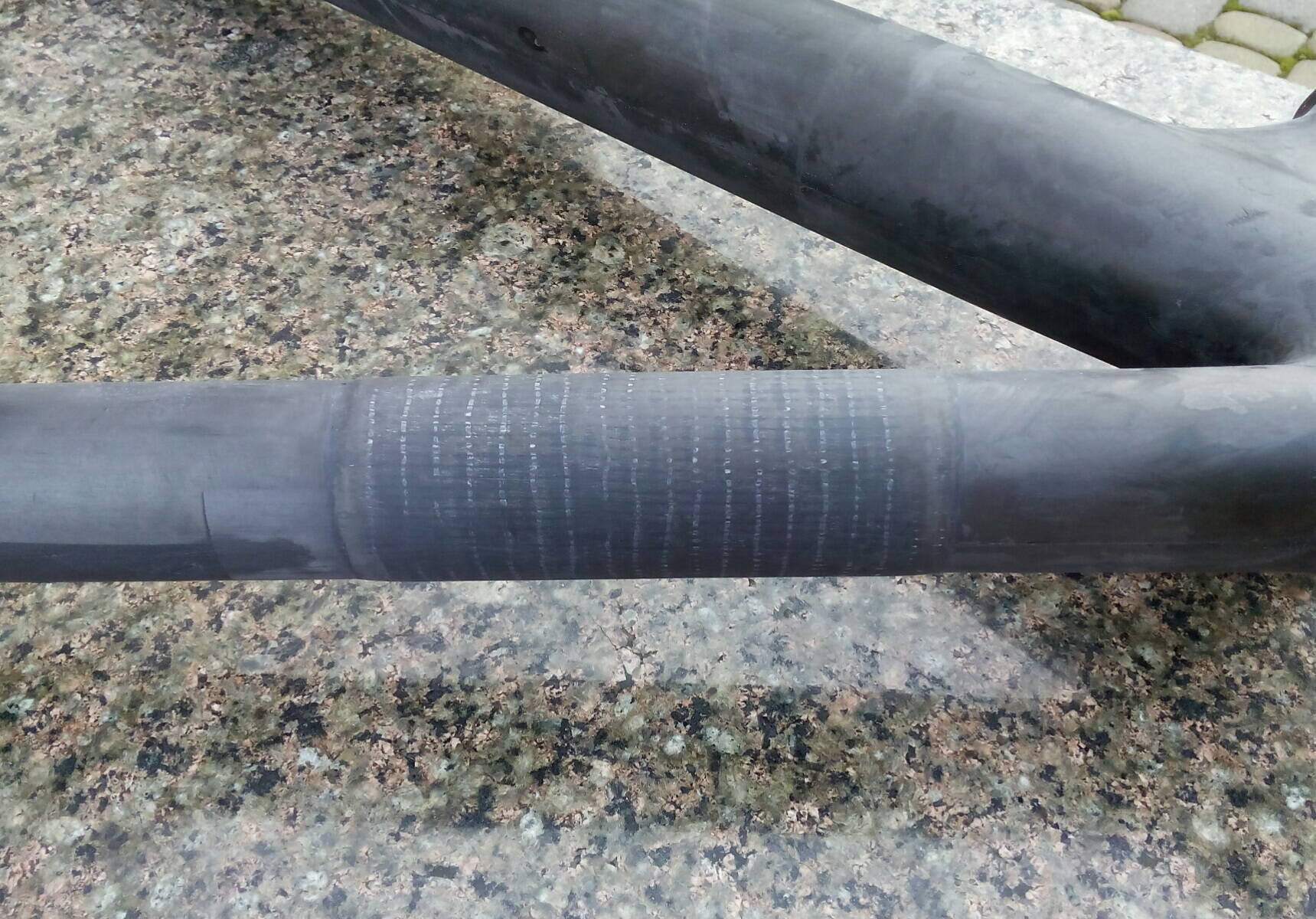 Заваренно, отшлифовано и затем обмотано карбоном и подготовлено к покраске с отшпаклеванными переходами с карбона на алюм.трубу.