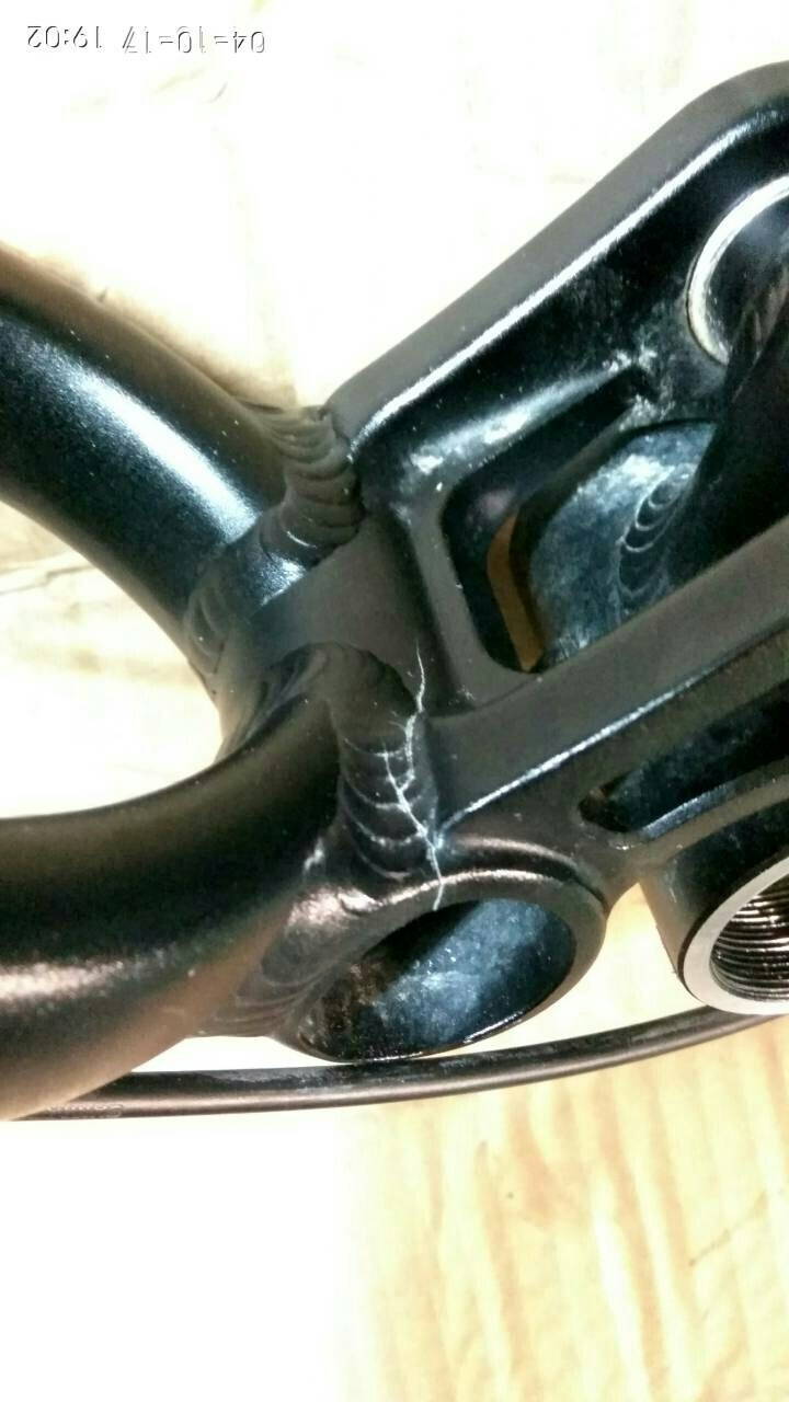 Перелом потсидельной трубы и трещины на верхней трубе у рулевого стакана: