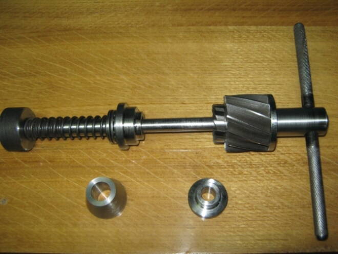 Закончен опытный образец торцовки рулевого стакана 1.1/8" под неинтегрированную колонку. Делать все с нуля не видел смысла, поэтому в конструкцию торцовки кареточной трубы пришлось внести незначительное изменение и изготовить новые дополнительные детали, из которых и собирается уже новый инструмент.
