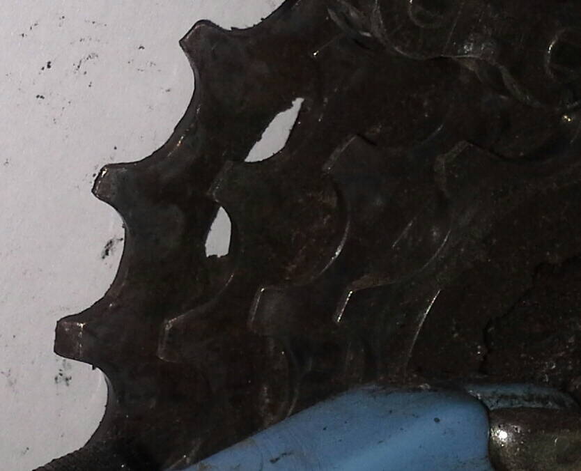 Я обычный пользователь велосипеда: смазываю периодически, подстраиваю переключатели, подтягиваю гаечки. Вчера что-то стала проскакивать цепь практически на всех передачах. Посмотрел дома на звездочки на системе и кассете, что-то подозрительно они выглядят, но я в матчасти не силен. Прошли 3-3,5 тысячи км. Пожалуйста, гляньте опытным глазом, их на выброс, или еще можно покататься?