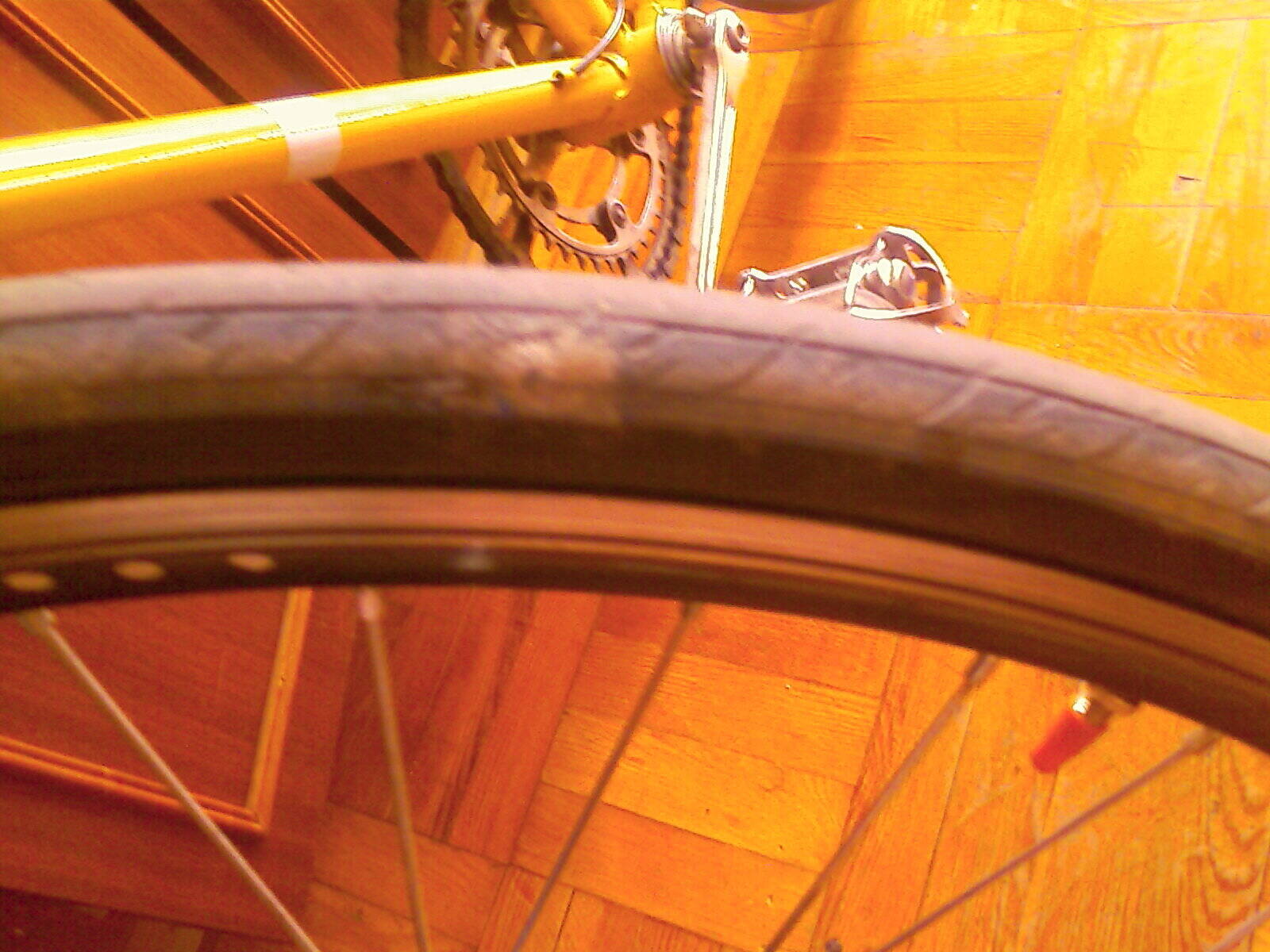 Порезал причём, о камушек. Камушков дождями намыло на асфальтец. Переднее то уберегаю, а заднее - не уследишь, частенько отстреливает по сторонам. Бывают и острые, свежесколотые. Им видать и ухайдокал.