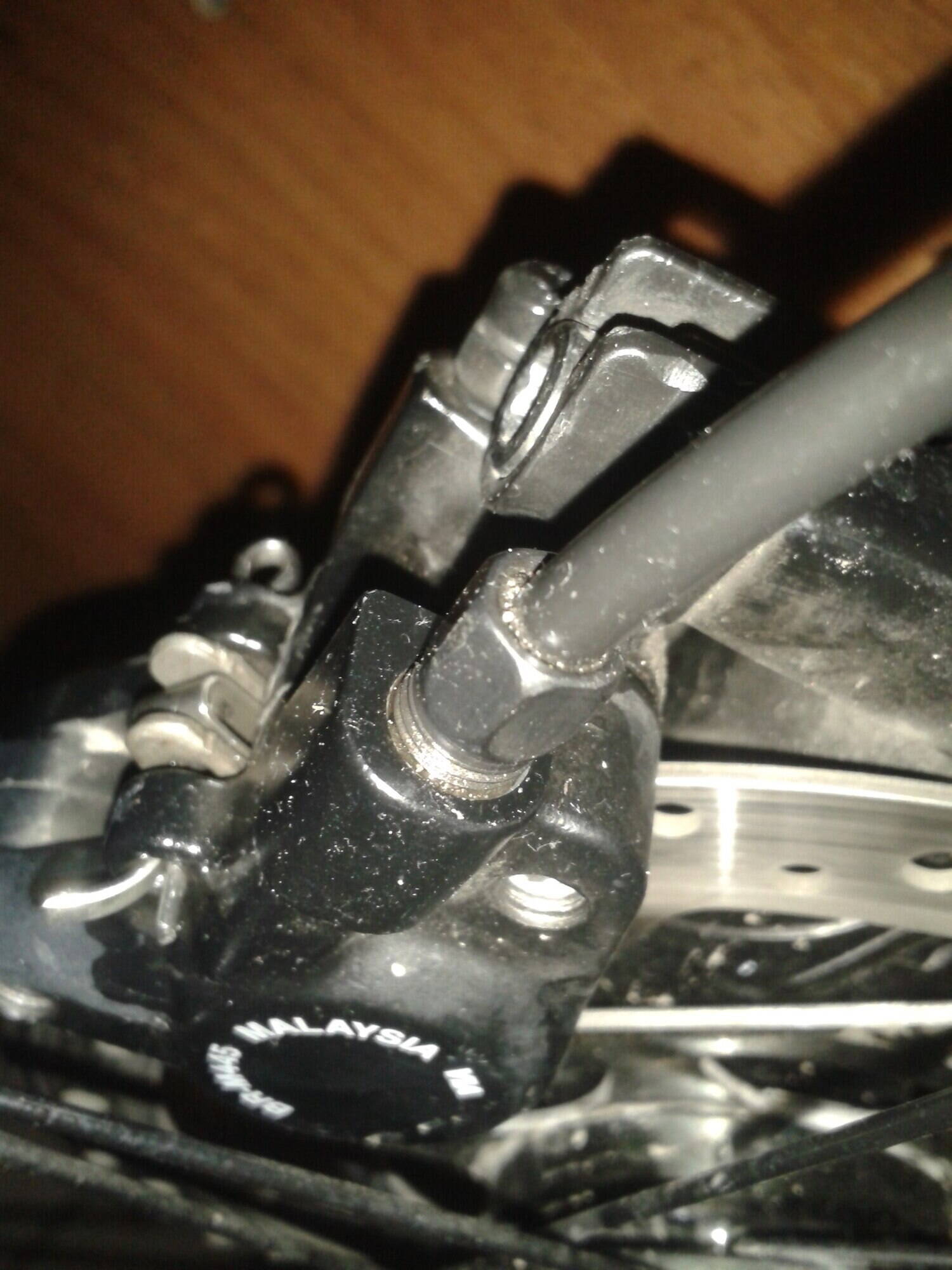 прошу помочь! потекла Гидравлика под штуцером-на калипере ! калипер Shimano вr-m445. кто сталкивался с проблемой прошу помочь !что могло вызвать что бы текли масла ?и какое решение ?поршень целый !!!!подтикает именно штуцер на калипере !