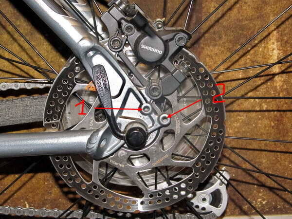 2. продевается в отверстие багажника, а со стороны рамы на него накручивается несколько гаек, за счет чего стойка отдаляется на некоторое расстояние от рамы и не упирается в диск. тормоз;
