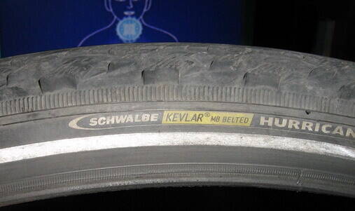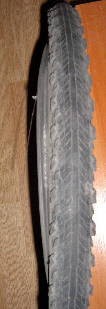 Собственно, проблем не было на протяжении 7000 км. Почти беспрокольная (3 раза на пару колес за 5000 км) за счет кевлара, легкая, быстрая Швальбе Харрикейн (фото 1). Пару раз за сотню км неожиданно спускало колесо(оказалось, осколок стекла застрял в резине). Извлек, поставил новую камеру... Прокол!!! Доталкиваю домой, снимаю... Вижу- корд стальной(думал, что там кевлар) вылез и прокусил камеру (фото 2). Край покрышки по-прежнему такой же жесткости, как и на невылезшем участке. Хотя пузо появилось (вид сверху, фото 3). Может, просто тянет кордом.