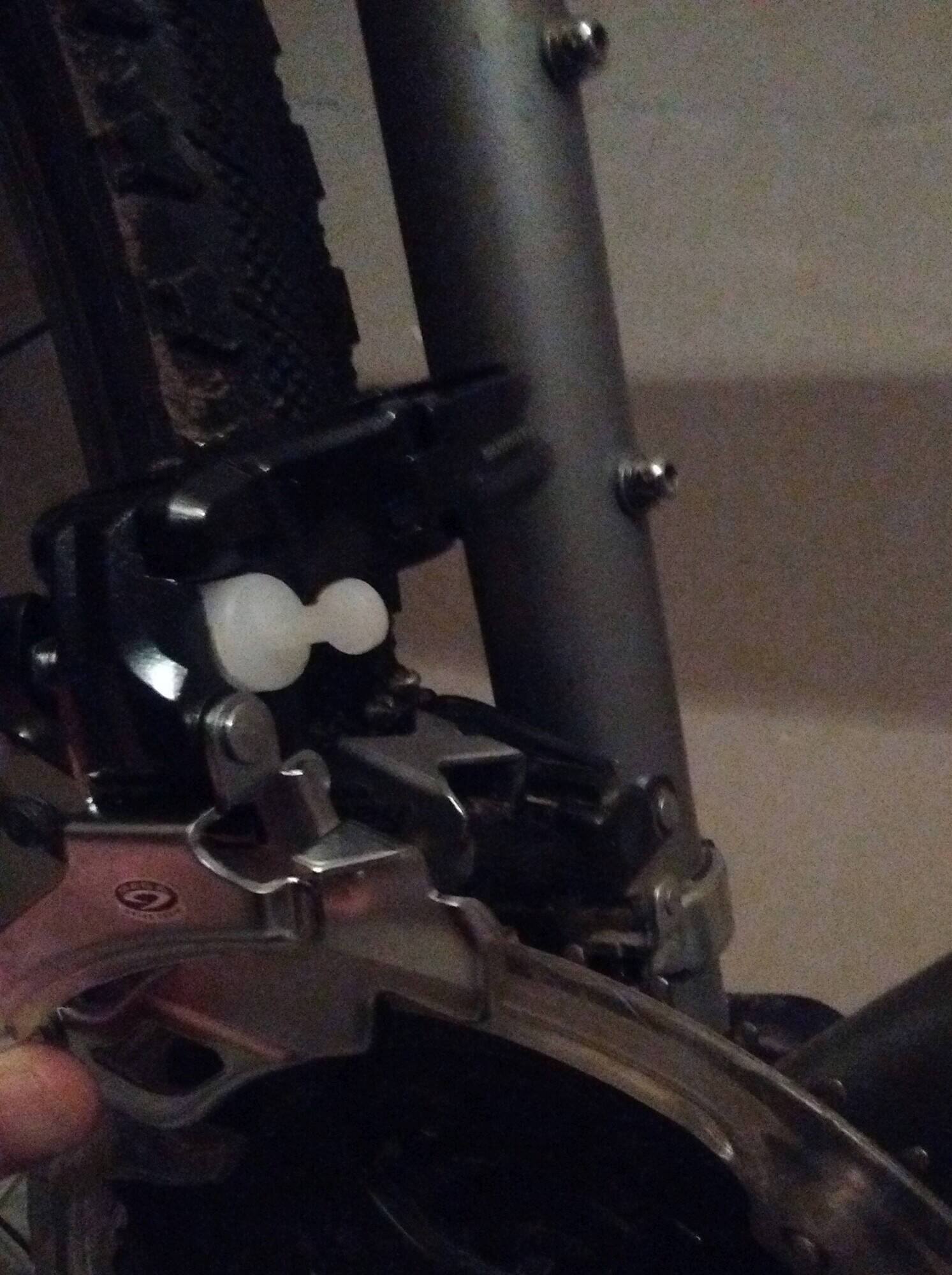 Тепер питання. Я можу поставити цей перемикач, а можу спробувати поміняти його на такий самий з нижнім хомутом. (А якщо не вийде поміняти, можу, врешті-решт, продати його й купити інший; він мені дістався за такою ціною, що варіанти можливі різні :).) Почитав багато технічних форумів, у тому числі англомовних, порозпитував друзів, які багато їздять, різних веломеханіків тощо; у тих, з ким розмовляв про конкретну ситуацію, думки розійшлися. Одні кажуть "Я б поміняв", інші кажуть "Я б поставив цей та їздив".