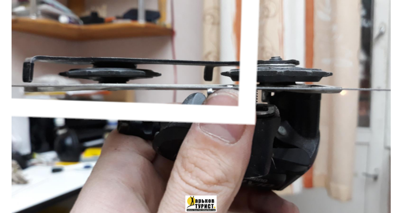 Покупатель говорит, что поставив старый на место и поменяв кассету на 32 зуба все заработало. Запросил видео в работе нового переклюка. Пересмотрел видео на ютьюбе, везде такая несооосносность крутя в руках. Видать с тросом на раме становится в нужное положение. Скинул ему ссылку на эту тему. Будем дальше думать.