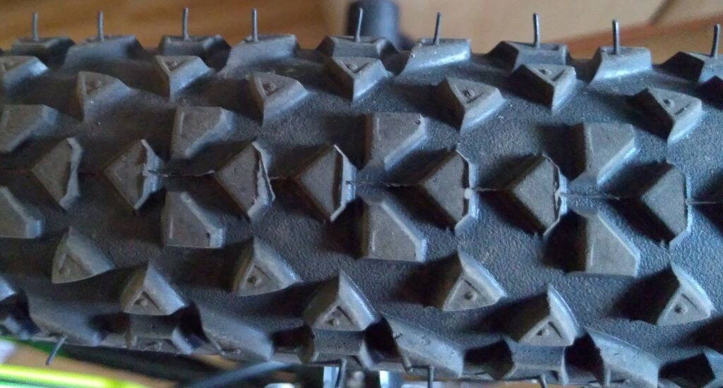 Так же странно что шипы облазят ззади(покрышка установлена в корректном направлении).