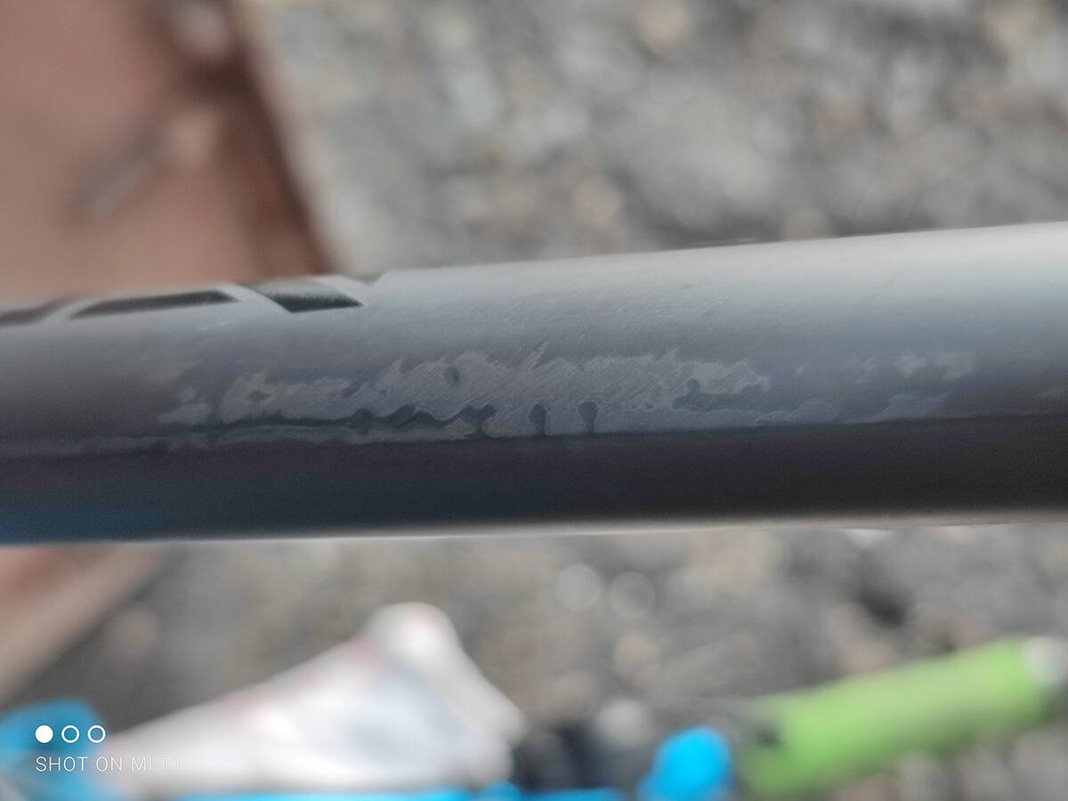 Здравствуйте. Подскажите пожалуйста, около двух недель назад я купил себе карбоновый руль Truvativ Descendant Riser Carbon 35, брендовый и дорогой, только сегодня выдалось время, что бы установить его. После установки обратил внимание, что на нем какие-то пятна. Прикладываю фото и видео