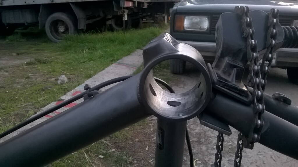 В кареточной трубе рамы просверлено отверстие для фиксации эксцентрика болтом! Болтом, Карл!