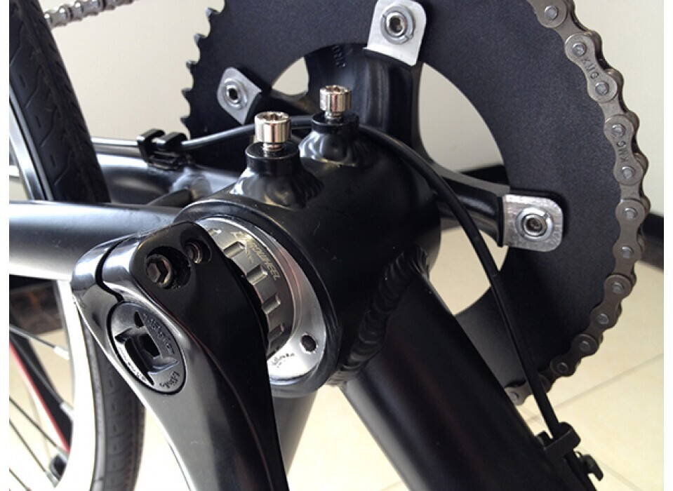 Каретка на выносных подшипниках, без люфта в подшипниках. Установлена в кареточную трубу через эксцентриковую проставку, как на некоторых синглах и велах под планетарку, вот такой эксцентрик (позвольте называть эту деталь так):