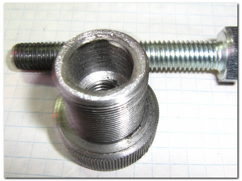 Был сделан прошлой зимой,когда в магазинах ничего из велотоваров не было.Резьба под шатуны М22х1,внутри обычный болт М10,остальные размеры произвольные.Отверстие под болт М10 было рассверлено до диам.14,5мм на глубину 13мм на глаз(какое первое подходящее сверло попалось)позже,когда снимал шатуны с креплением на гайках(а не болтами).Был применён для "квадратных" кареток и Truvativ Powerspline на GT.Больше ничего не попадалось.