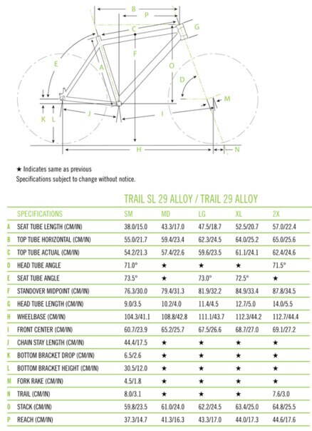 Теперь присматриваясь к Cannondale trail 7 2014 29er не могу определиться между М и L. М: ETT 59.4 см, стендовер - 79,4. L: ETT 62.3 см, стендовер - 81,9 см.