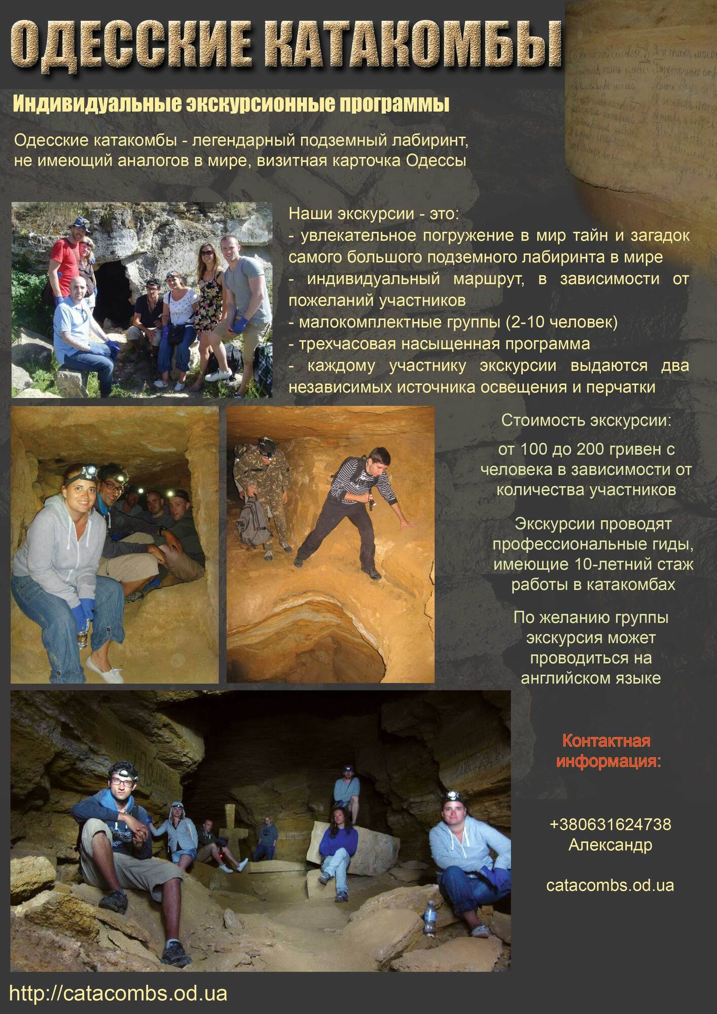 Проводим индивидуальные погружения в лабиринты Одесских катакомб - самых больших подземных лабиринтов в мире Профессиональные гиды, сопровождение на русском и английском языках.