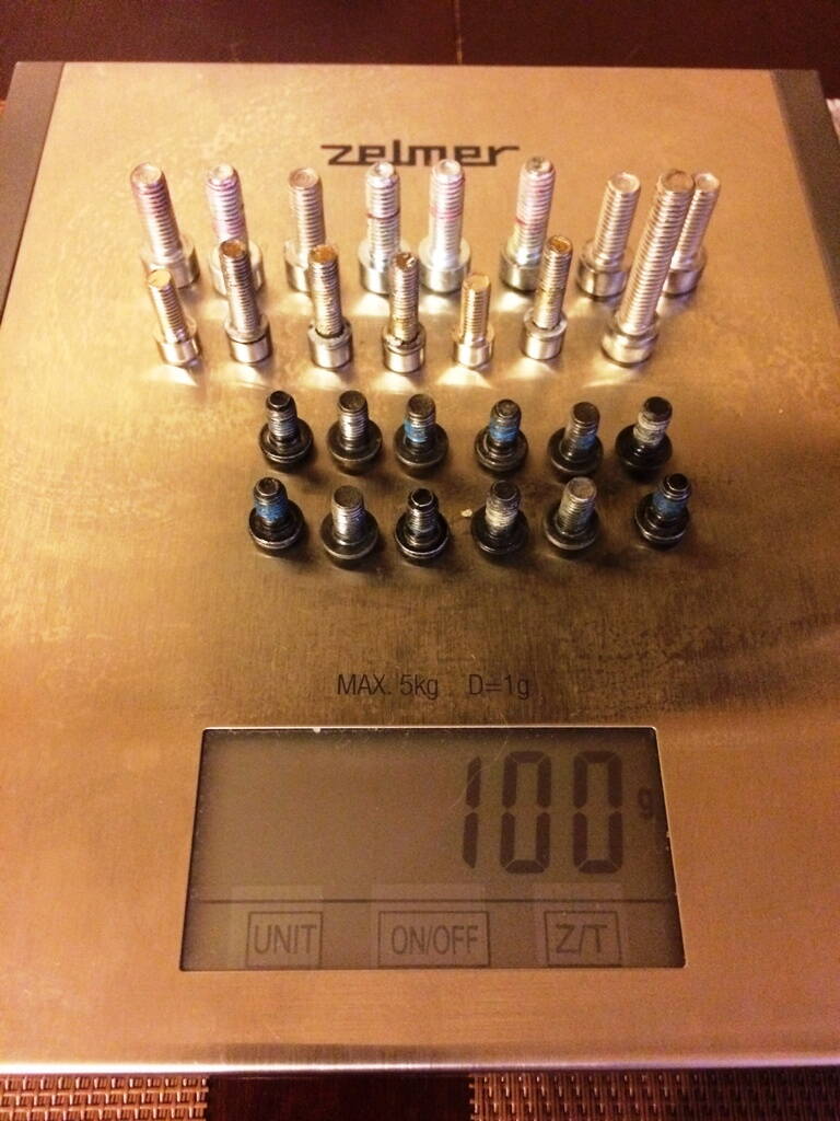 А оно надо, скидывать 120 грамм на таких железячках? Я понимаю, сбрасывать вес за счет легких ободов, спиц, бескамерных покрышек, легкой и хорошо работающей вилки, но болтики и прочие железячки, которые висят себе на раме и не делают погоды.... Разве что для красоты.